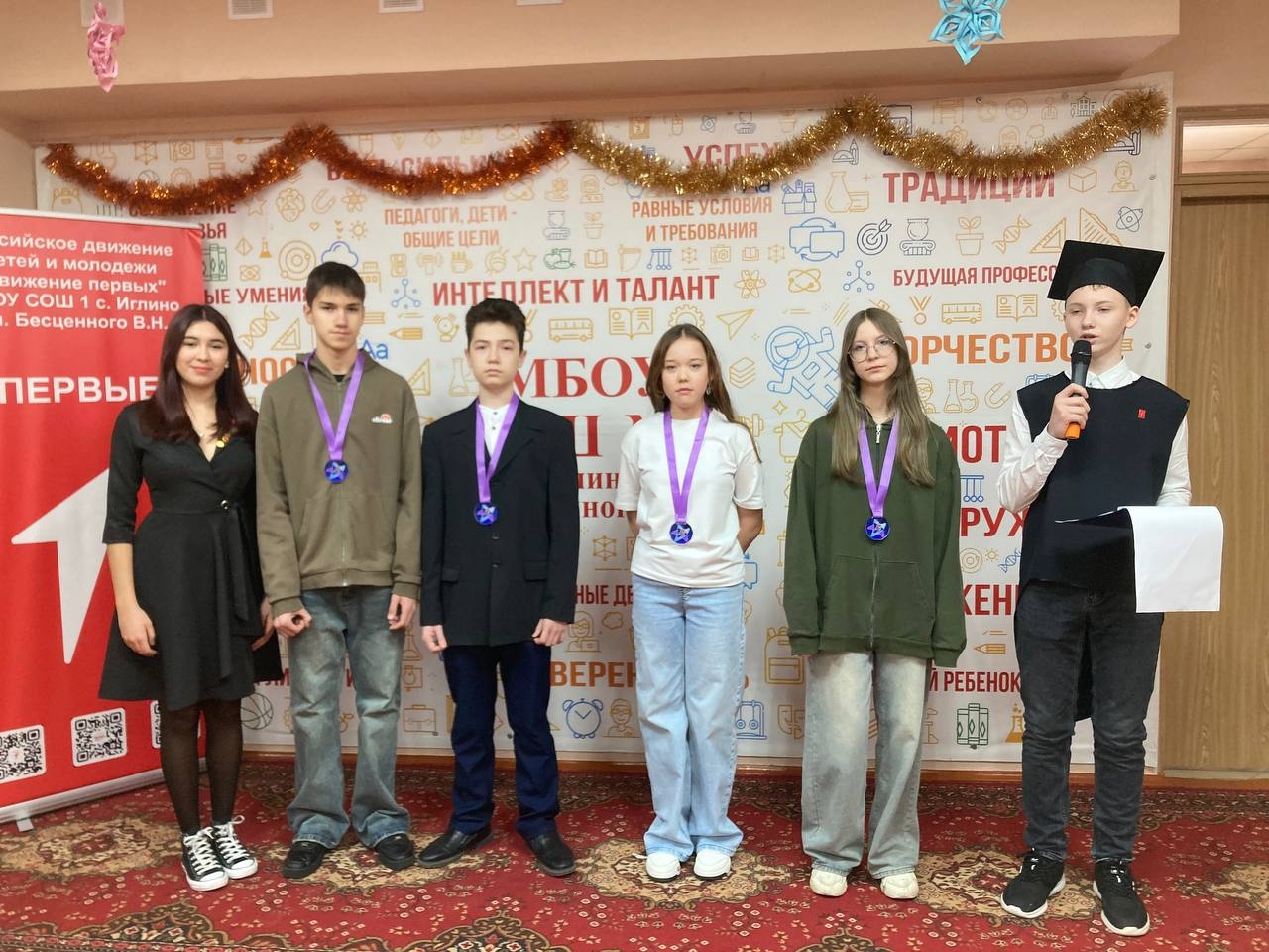 На новогоднем мероприятии среди седьмых классов активисты «Движение Первых» организовали церемонию чествования победителей районных олимпиад, соревнований, турниров «Зажги свою звезду»! Подняться на свою вершину, покорить свой Звёздный Олимп сегодня смогут те, кто принес славу нашей школе, кто защищал ее честь на районных, республиканских олимпиадах, соревнованиях, конкурсах, кто своим трудом делает школу лучше и краше, а школьную жизнь – интересной, креативной и незабываемой!