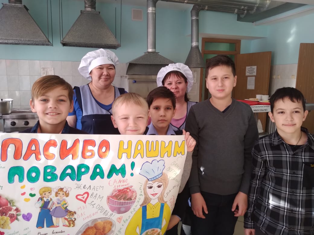 Ребята из начальных классов классов приняли участие во ФЛЕШМОБЕ " ЗА ПОВАРОВ"!!!Повар у плиты творит,