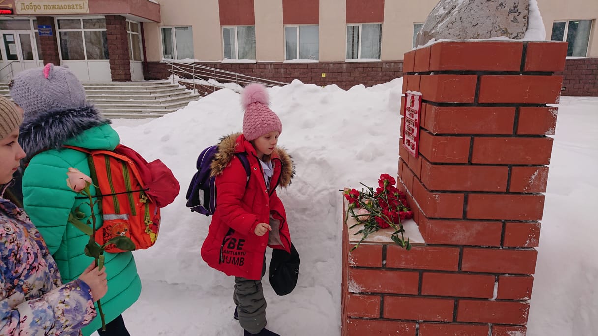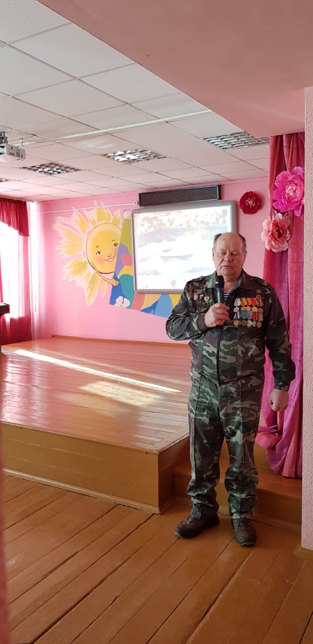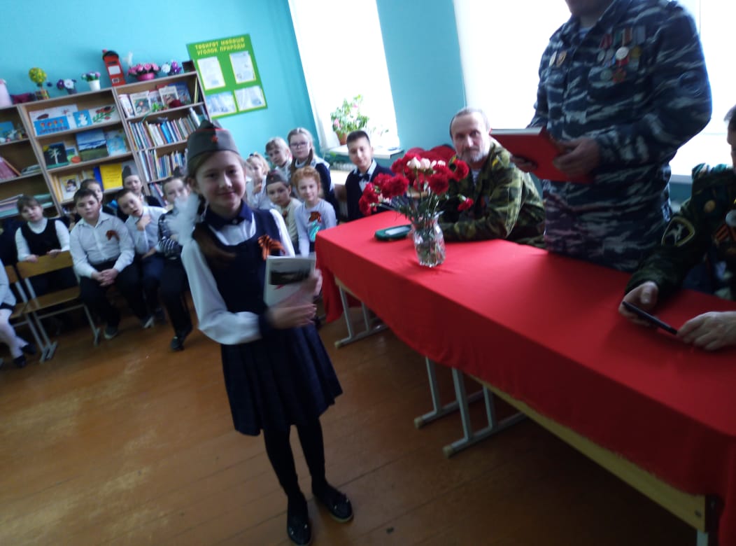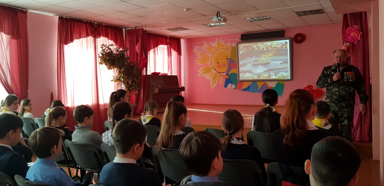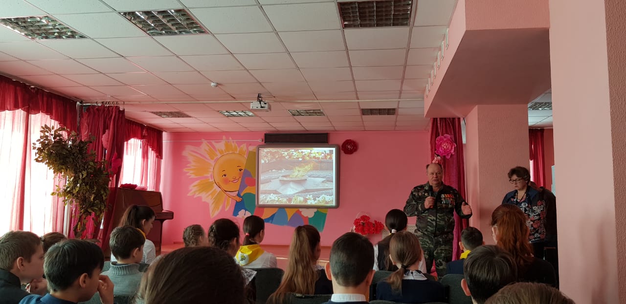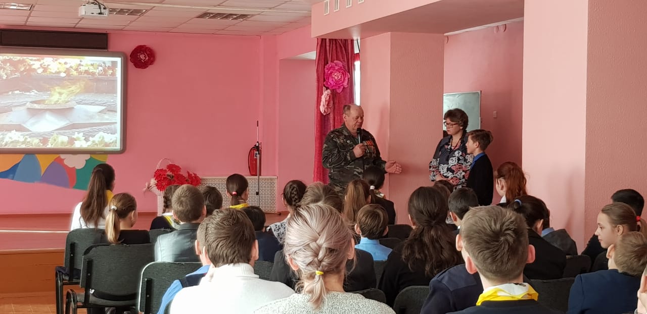 Были организованы встречи с ветеранами боевых действий в Афганистане. В 6-х классах ребята пригласили на встречу Девяткина Дмитрия Фёдоровича. Он рассказал о тяжёлых военных буднях своих товарищей в Афганистане. Тщательно подготовились ко встрече с героями и ребята начальной школы. Они организовали целый концерт: выучили песни, стихи. В конце встречи была организована совместная фотосессия и возложение цветов к бюсту Героя Советского Союза В.Бесценного.